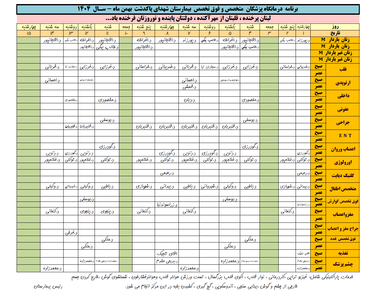 برنامه کلینیک تخصصی بیمارستان بهمن ماه