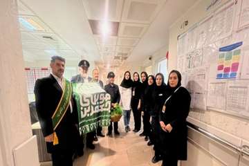 حضور خادمین امامزاده جعفر پیشوا در بیمارستان شهدای پاکدشت به مناسبت روز پرستار و ولادت با سعادت حضرت زینب (س)